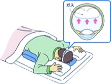 硝子体を切除してガスを入れた場合、ガスで網膜を押すために、うつ伏せで寝ていただきます。